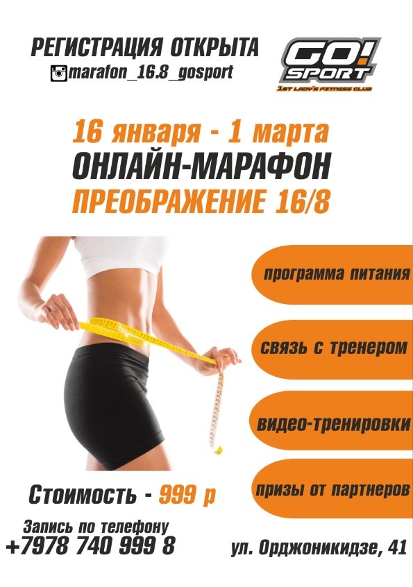 16 января первый женский фитнес-клуб GO!Sport запускает уникальный проект - ОНЛАЙН-МАРАФОН