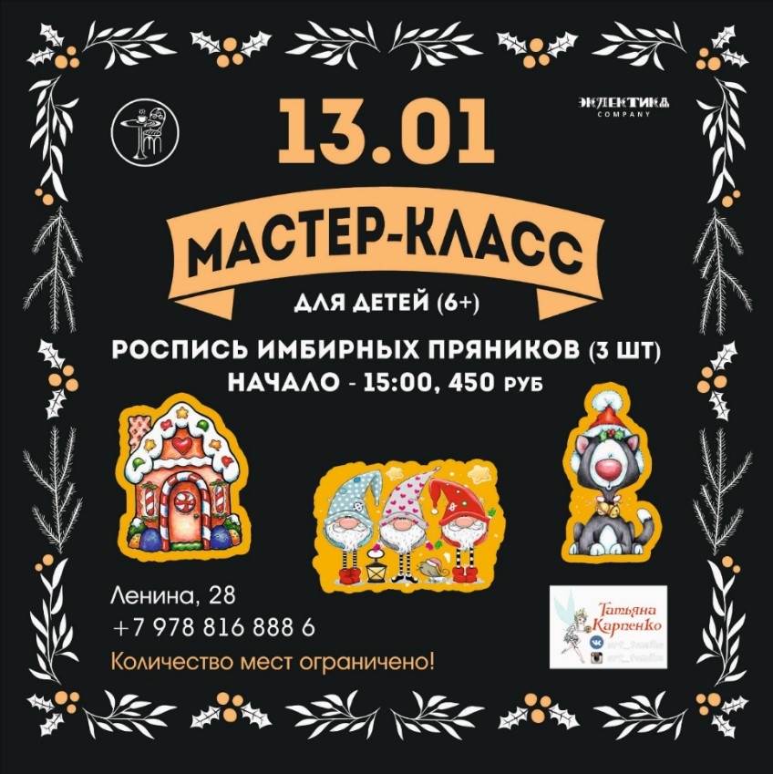 13.01 под руководством пряничной феи состоится творческое занятие по росписи имбирных пряников.