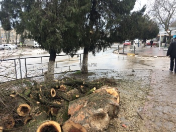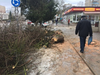 В Керчи наконец спилили дерево, которое перекрыло пешеходную дорожку