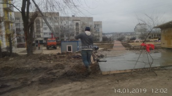 В Керчи у дома для депортированных, в районе Марата, начали ремонтировать автобусную остановку. Фото в Керчь.ФМ прислал наш постоянный читатель. Керчане надеются, что строители вспомнят и про пешеходную дорожку.