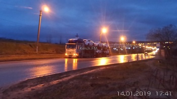 В Керчи вечером 14 января автомобилевоз остановился на «аварийке» на Куль-Обинском шоссе. Постоянный читатель сообщил Керчь.ФМ, что автовоз сломался.