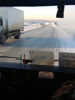 На трассе Керчь-Феодосия, в районе Батального на трассе - сплошной лед. Фото и видео в Керчь.ФМ прислали наши постоянные читатели. Движение затруднено
