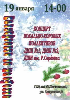 В культурном центре им. Ю.Богатикова 19 января состоится концерт вокально-хоровых коллективов детских музыкальных школ города и детской школы искусств им.Р.Сердюка. Об этом сайту Керчь.ФМ сообщили организаторы.