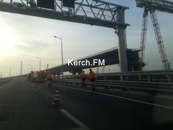 На Крымском мосту 25 января проводят работы. Дорожники частично ограничили движение по одной полосе. Однако, это не мешает транспорту. Об этом сообщает журналист Керчь.ФМ