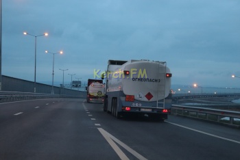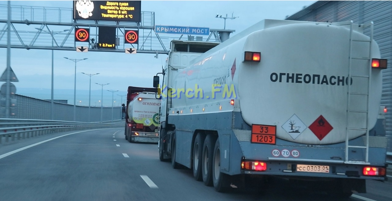 А пока фуры с огнеопасными жидкостями едут по Крымскому мосту. Вчера журналисты сайта засняли их движущихся в Крым около 17:30.