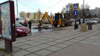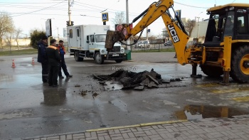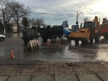 В Керчи вечером 31 января начались работы около Кирова, 5, на месте, где паркуются автомобили. Как передает корреспондент Керчь.ФМ, утром 1 февраля работы продолжились. Вода течет по прилегающим улицам.