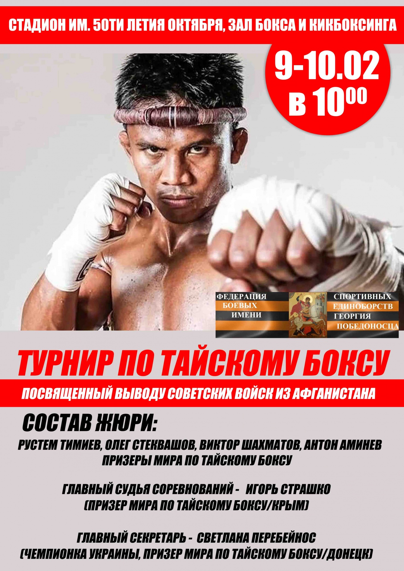 В Керчи 9 и 10 февраля в 10.00 пройдет турнир по тайскому боксу, посвященный выводу войск из Афганистана. Об этом сайту Керчь.ФМ рассказали организаторы