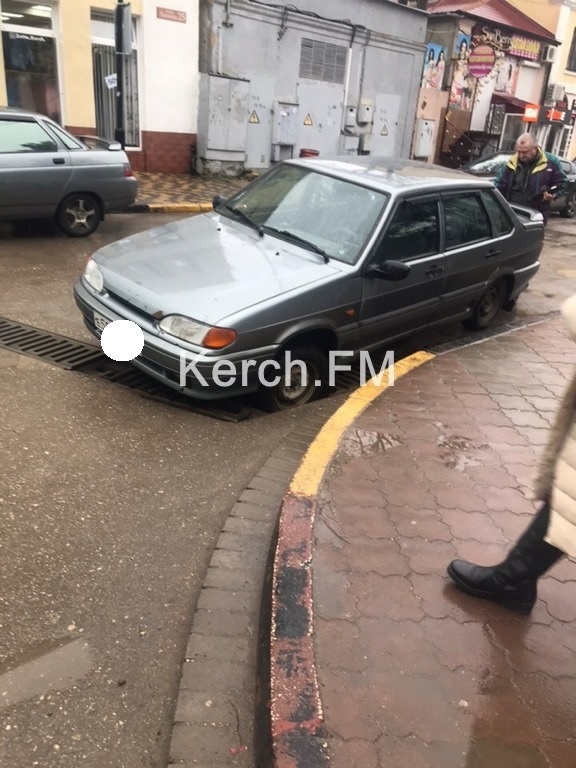В Керчи 8 февраля в переулке Кооперативный автомобиль марки «ВАЗ» провалился в ливневку. Об этом Керчь.ФМ сообщили очевидцы.