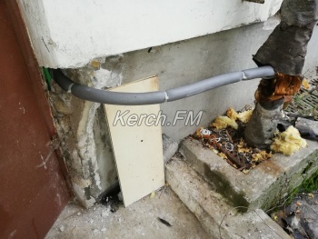 «На прошлой неделе была статья по поводу устранения течи на водоподводящей трубе в подъезд по адресу Еременко, 39, второй подъезд. Работу выполнял ответственный МУП Могок РК Жилсервискерчь. Течь устранили, не довели до образования озера перед подъездом, но как сделали работу! Полюбуйтесь. Оставили разбитую стену со сквозной дырой, теперь в подъезде гадят кошки, температура уличная, сырость. Старую трубу так и оставили с разодранным утеплителем, выбитые кирпичи так и оставили валятся. Ну как так можно не уважать свою работу и с таким пренебрежением относится к жильцам, которые платят вам за услуги ЖКХ. Ну неужели трудно сделать так, ч то бы пройдя мимо приятно было посмотреть на добросовестную работу!», - написали керчане