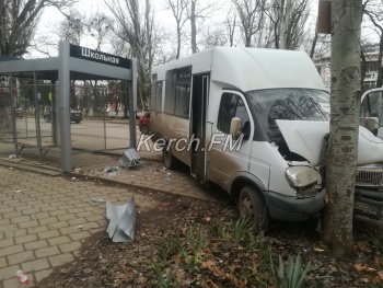В Керчи 10 февраля на улице Орджоникидзе произошла авария. Маршрутка снесла урну и въехала в дерево. Об этом с места происшествия сообщает журналист Керчь.ФМ.