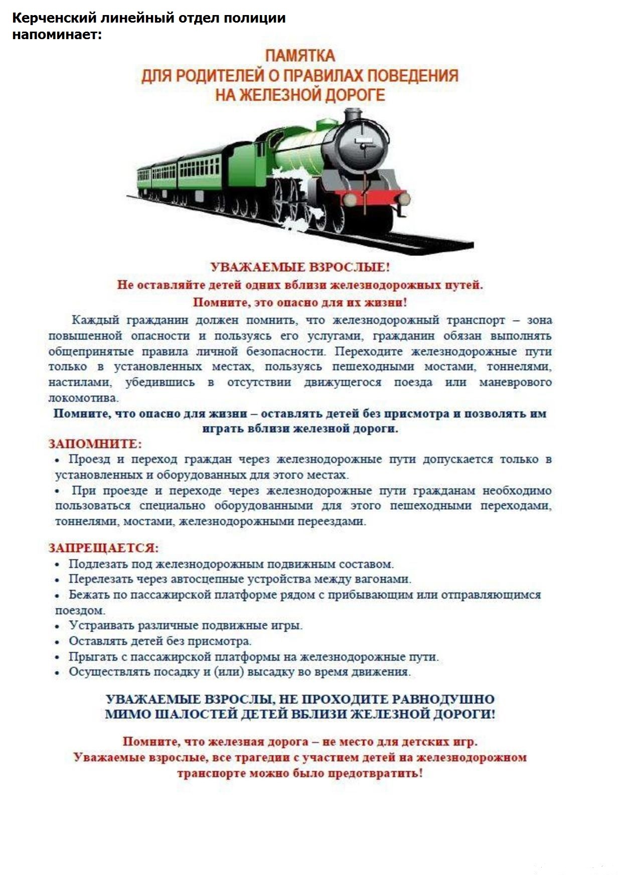 Керченский линейный отдел полиции напоминает правила поведения на железной дороге