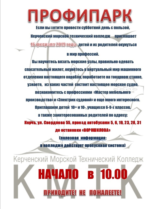 Керченский морской технический колледж начинает серию профориентационных мероприятий для школьников, среди которых ПРОФИ-ПАРКи, Дни открытых дверей, экскурсии для школьников в формате квест-игры.