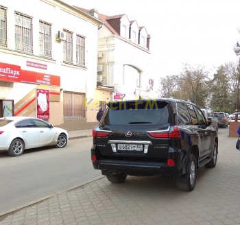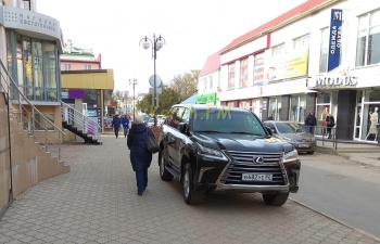 «Лексус» припарковали прямо под знак «Работает эвакуатор» прямо на тротуаре