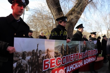 Керчане возложили цветы в память воинов-афганцев. В этом году керчане проходили через бессмертный полк воевавших в Афганистане. Студенты с фотографиями воинов-афганцев, которые умерли или погибли, стояли по обе стороны аллеи, - передает Керчь.ФМ.