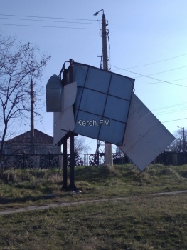 В Керчи у дороги на ул. Чкалова ветер раскурочил железный билборд. Фото в Керчь.ФМ прислал постоянный читатель.
