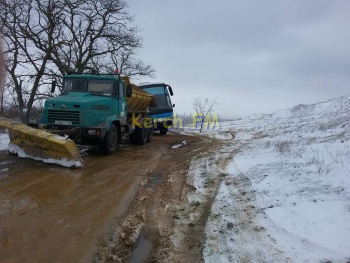 Экскурсионный автобус из-за снега и гололеда не смог подняться на Митридат в Керчи. В настоящее время въезд на гору перекрыт, на месте работают ГИБДД и УЖКХ, - передает Керчь.ФМ.