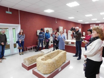 Особый интерес посетителей вызвал рассказ об открытии и исследовании монументального архитектурного ансамбля IV в. до н.э., расположенного на террасах склона. Частью этого архитектурного ансамбля были пропилеи -парадный вход в город и театрон», - подчеркнули в пресс-службе.