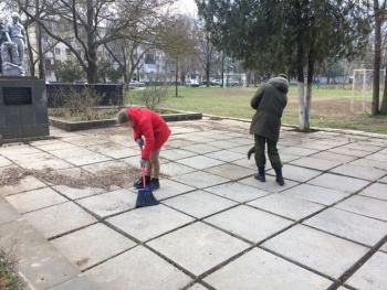 На призыв откликнулся Военно-патриотический клуб "Эльтиген". Историческое общество обеспечило всех необходимым инструментом, мусорными пакетами, перчатками, осуществляло общее руководство, а его руководство, также на равне с юными активистами, взялось за лопаты и метлы.