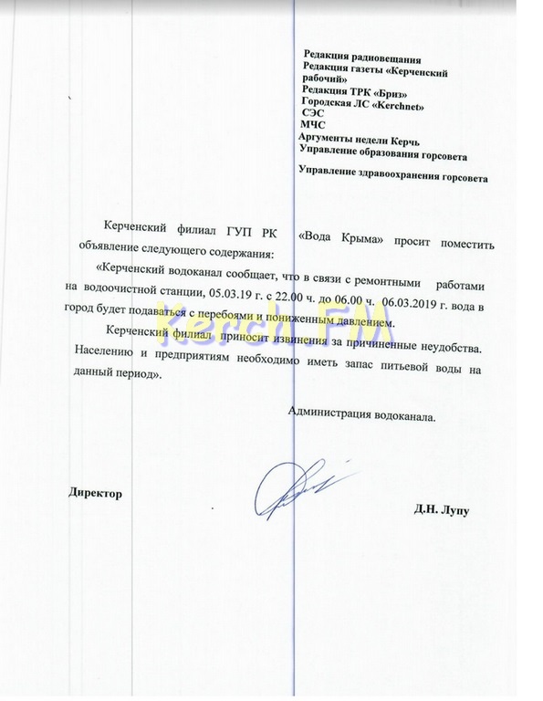 Стоит отметить, что сообщение о предстоящих работах было разослано вчера после окончания рабочего дня, поэтому далеко не все керчане смогли запастить необходимым количеством воды. При этом, для полноты информации водоканалу необходимо сообщать не только время проведения работ, а реальное врем поступления воды в квартиры абонентов.