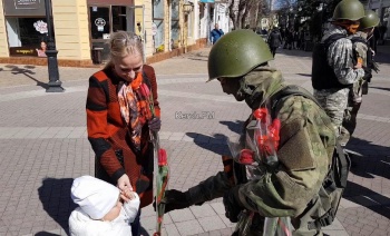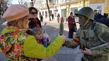 В Крыму «Вежливые люди» дарили прохожим девушкам и женщинам цветы. Акция прошла по инициативе депутата Госдумы Руслана Бальбека, сообщил он в «Фэйсбук», - передаёт Керчь.ФМ.