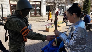 Идея эта мне пришла неожиданно. Я решил, что наших любимых женщин в преддверие 8 марта нужно чем-то порадовать, тем более еще и в канун пятилетия воссоединения Крыма с Россией. И "Вежливые люди", вежливые - в самом прямом смысле этого слова что тогда, что сейчас - и яркие тюльпаны - вызвали улыбки на лицах. Наверное, это главное, к чему мы стремимся на нашем полуострове.