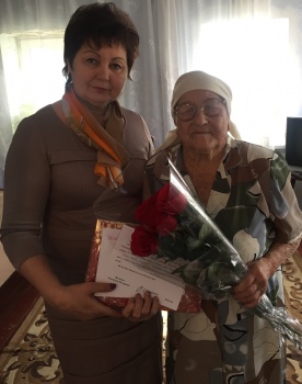 В тёплой душевной обстановке Галина Ивановна выразила благодарность за труд в тяжёлые годы войны и в послевоенное время, пожелала крепкого здоровья, бодрости и хорошего настроения, счастья, зачитала и вручила Тамаре Власовне персональное поздравление Президента Российской Федерации Владимира Путина.