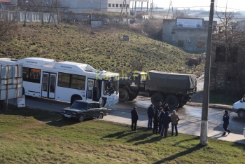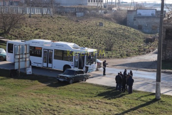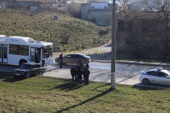 В Керчи легковушка столкнулась с рейсовым автобусом и залетела на газон. На место выехали сотрудники полиции и стали регулировать движение, - передает Керчь.ФМ.