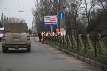 В Керчи 21 марта на улице Кирова и Адмиралтейском проезде люди красят заборы, которые ограждают тротуар от проезжей части. Некоторые рабочие находятся на дороге, не соблюдая технику безопасности, - сообщает корреспондент Керчь.ФМ.