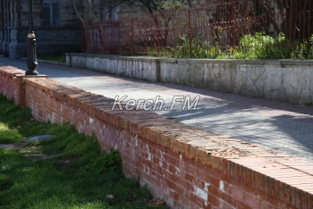 А также парапет у бывшей гимназии на Театральной рассыпается на мелкие кусочки - хоть людям вред это вряд ли принесет, но вся трава усыпана остатками кирпича.