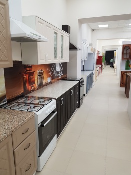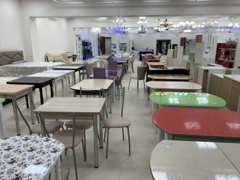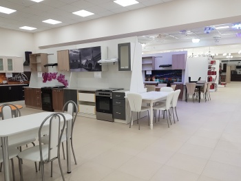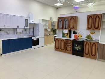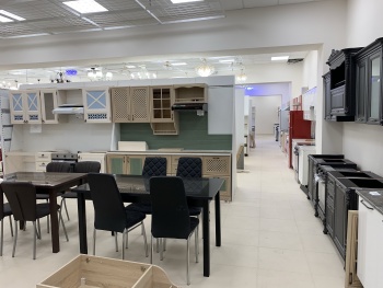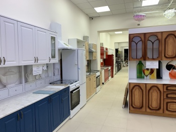 В торговом зале представлены: более 30 моделей прямых и угловых кухонь различных ценовых категорий от ведущих российских и белорусских производителей; кухонные уголки; бытовая техника для кухонь и ванных комнат; мебель для спален; столы и стулья.