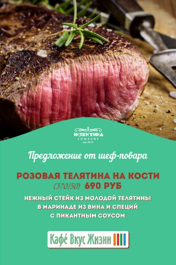 - розовая телятина на кости в ограниченном количество для истинных гурманов.