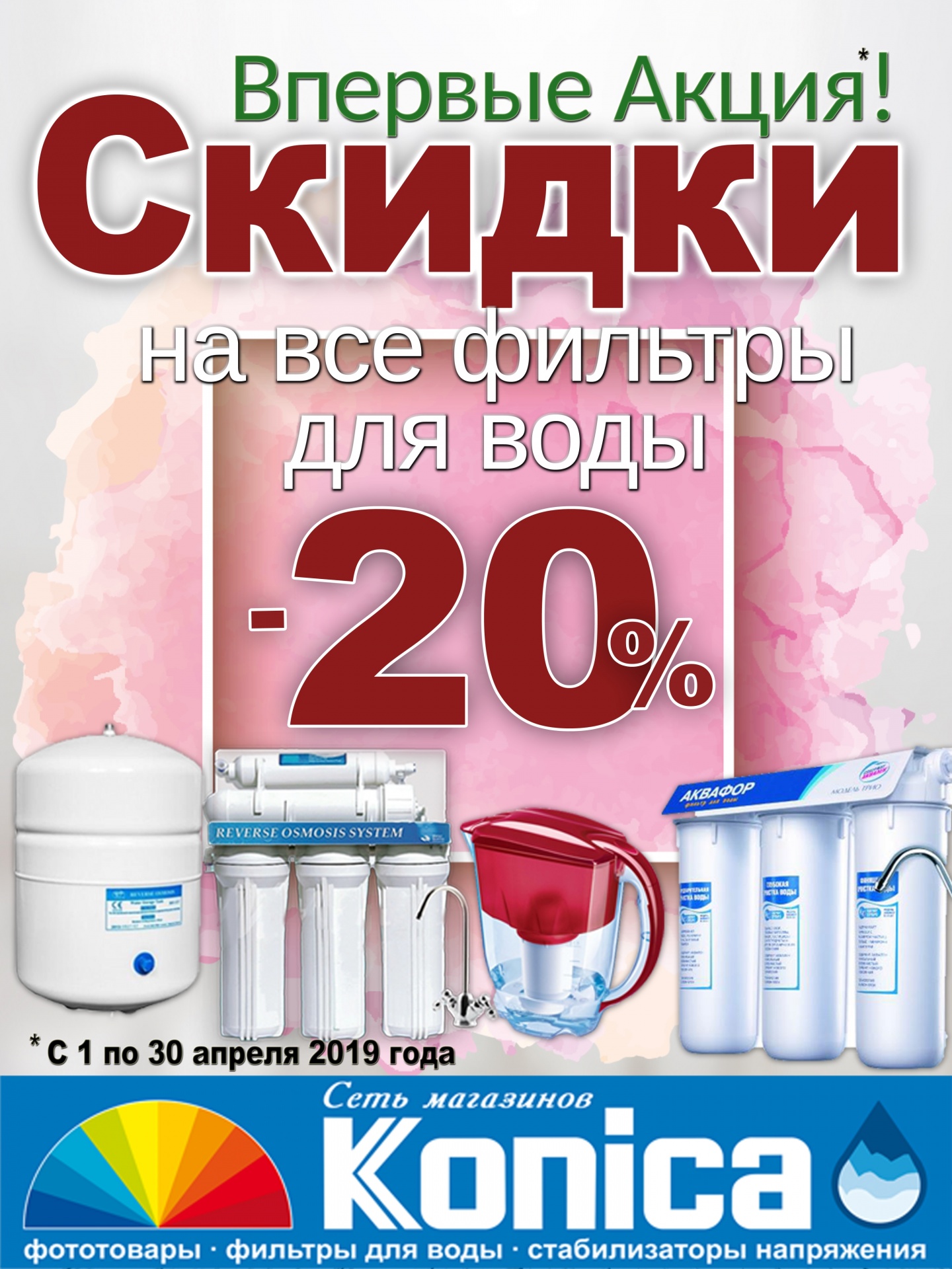 Впервые! С 1 апреля по 30апреля 2019 года. Скидки 20% на все фильтры для очистки воды.