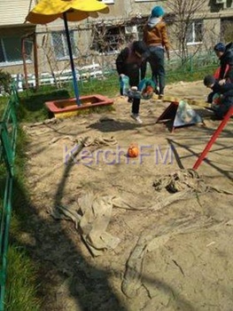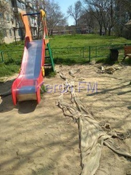 Жители с улицы Кошевого, 18 думают, что с новой детской площадкой что-то не так. Слой песка на площадке по словам местных жителей не более 3 см, а на песке лежит материя. Своими впечатлениями они поделились с Керчь.ФМ.