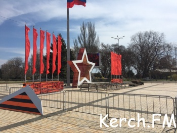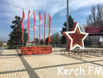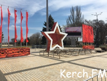 В Керчи 8 апреля на площади Ленина установили трибуну со звездой. По бокам от звезды поставили флаги, - передает Керчь.ФМ