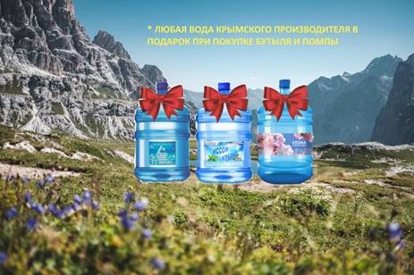 *- 19 л артезианской воды мы дарим каждому клиенту, кто на протяжении акции приобрел бутыль 19 л и помпу. В акции участвуют все воды крымских производителей. Акция распространяется только на магазины Воды и действует с 8 апреля по 20 апреля 2019 года включительно.