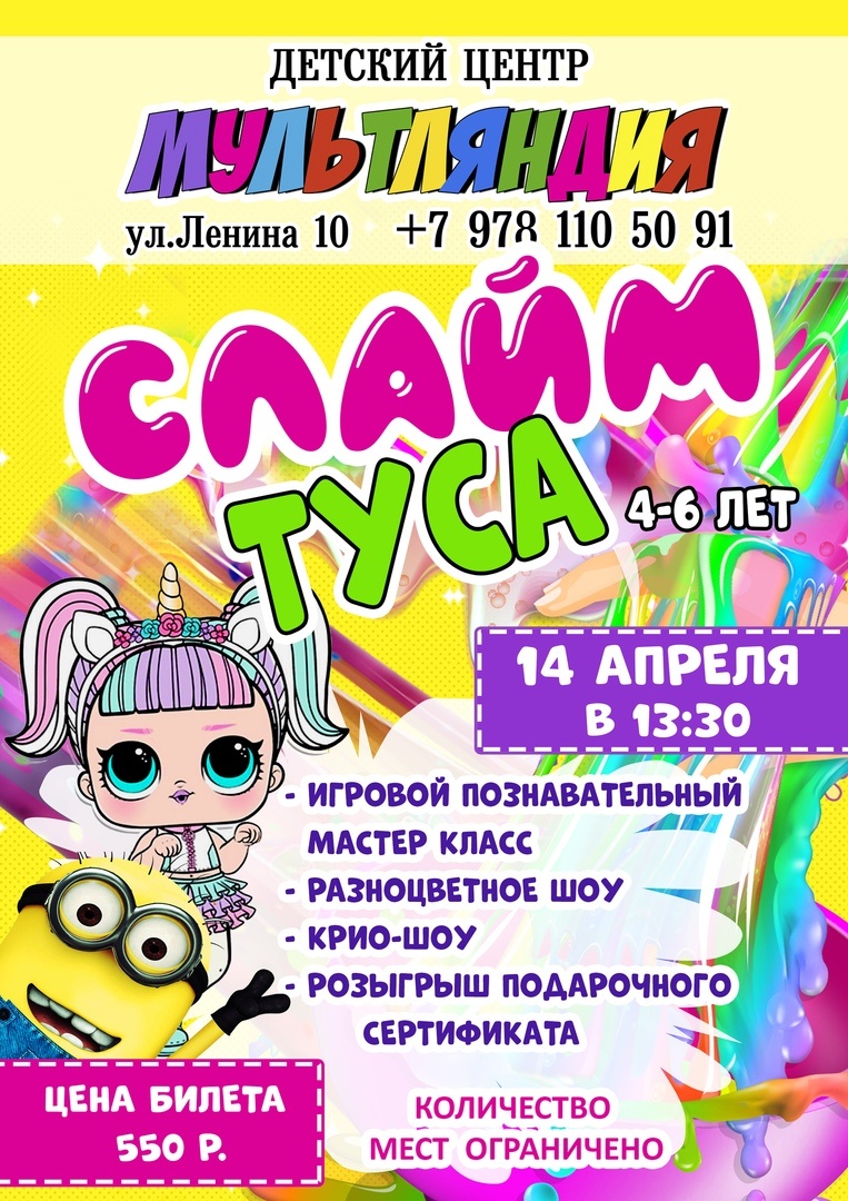 Дорогие друзья! 14 апреля в 13 :30 ждем мальчишек и девчонок на интересный МАСТЕР-КЛАСС по изготовлению Слайма!