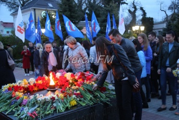 В Керчи 11 апреля вечером продолжились мероприятия, посвященные празднованию 75-летия освобождения города от немецко-фашистских захватчиков. Керчане вместе с властями города и приглашенными гостями возложили цветы к вечному огню в сквере Славы