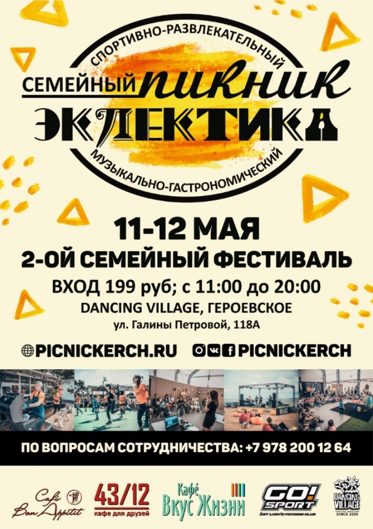 Специально для керчан и гостей города-героя компания «Эклектика» организовывает два раза в год большой двухдневный фестиваль на берегу Черного моря - "СЕМЕЙНЫЙ ПИКНИК ЭКЛЕКТИКА"! Спорт, музыка, гастрономия, развлечения. Событие, которое нельзя пропустить!