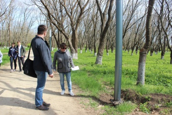 Представители компании, устанавливающей опоры освещения в Комсомольском парке, совместно со специалистами УЖКХ и МУП «Горсвет» выясняли причину частичного выхода из строя нескольких фонарных столбов.