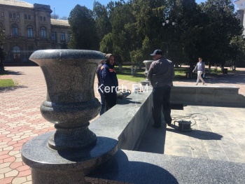 В Керчи 24 апреля в сквере Мира фонтан подготавливают к включению. Рабочие с помощью спецтехники производят работы по удалению известкового налета на плитке фонтана, - передает Керчь.ФМ.
