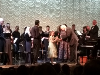Концерт состоял из двух отделений и длился три часа. Публика горячо приветствовала выступление музыкантов - юных по возрасту, но зрелых по мастерству. Лиза играла во втором отделении. В исполнении Куликовой Елизаветы и Севастопольского симфонического оркестра под управлением В.Кима прозвучал Концерт для скрипки с оркестром Дмитрия Кабалевского (ч.I).