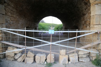 Привычный проход в Крепость Еникале закрыли лентами и табличками больше года назад. Причиной запрета на посещение памятника османского зодчества стала чрезвычайная ситуация 22 января, когда частично обрушилась арка "Керченских ворот".