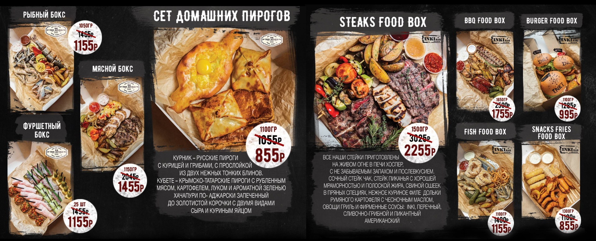 Food box угодят любому желанию и вкусу Steaks food box, BBQ food box, Snacks fries food box, фуршетный бокс мини-закусок, сет домашних пирогов или горячих закусок, бургеров, рыбный и мясной сет!