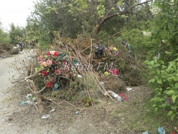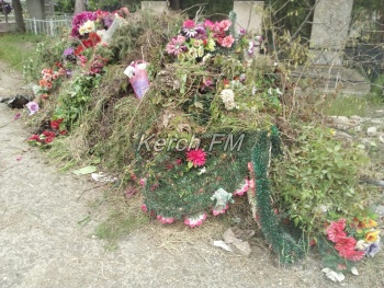 В редакцию Керчь.ФМ постоянные читатели прислали фотографии кладбища, которое завалено мусором в перемешку с ветками, травой и венками.