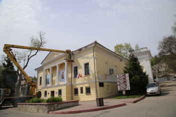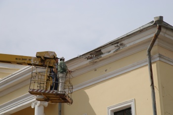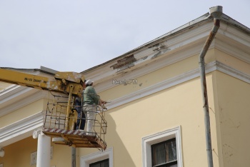 В Керчи 6 мая рабочие с помощью крана ремонтировали фасад и карниз Картинной галереи, - передает Керчь.ФМ. Место работ оградили. Ранее здесь была частично закрыта пешеходная дорожка из-за рушащегося фасада.