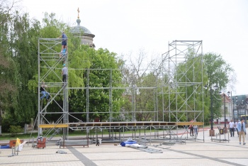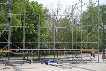 В Керчи на площади Ленина ставят большую сцену, которую привезли в город из Симферополя, - передает Керчь.ФМ. Напомним, 9 мая здесь выступят творческие коллективы города и ВИА «Синяя птица»