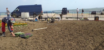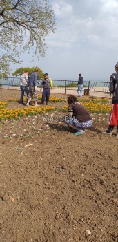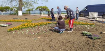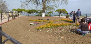 В Керчи на клумбе на горе Митридат 7 мая высаживали цветы на клумбе, - передает Керчь.ФМ. Работа длилась долго - цветы аккуратно высадили в форме звезды.