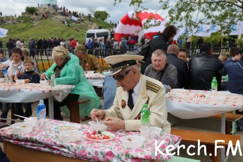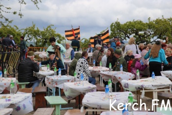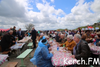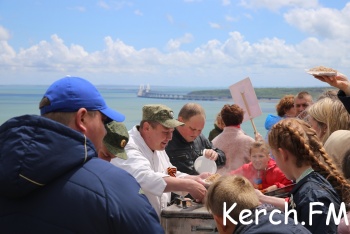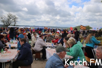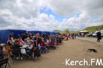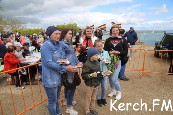 Кроме этого, всем желающим раздавали кашу, которую готовили в полевой кухне прямо на горе. Керчане выстроились в очередь, чтобы получить свою порцию.