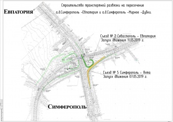 Запуск рабочего движения по съезду с Объездной дороги в сторону Симферополя начнется 8 мая. Второй съезд, позволяющий транспорту двигаться по развязке со стороны Севастополя в сторону Аэропорта, будет открыт 11 мая.