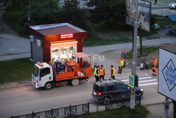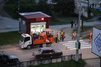 В Керчи 11 мая, вечером,  на улице Ворошилова рабочие с помощью техники нанесли дорожную разметку на пешеходном переходе, - передает Керчь.ФМ.